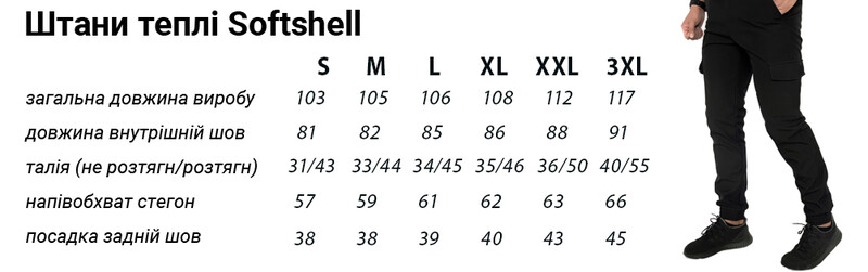 Усередині приємний, м'який фліс. Завдяки комбінації матеріалів і практичного крою, штани добре зберігають тепло і не пропускають вологу ззовні. Рекомендований температурний режим від +7°С до -10°С