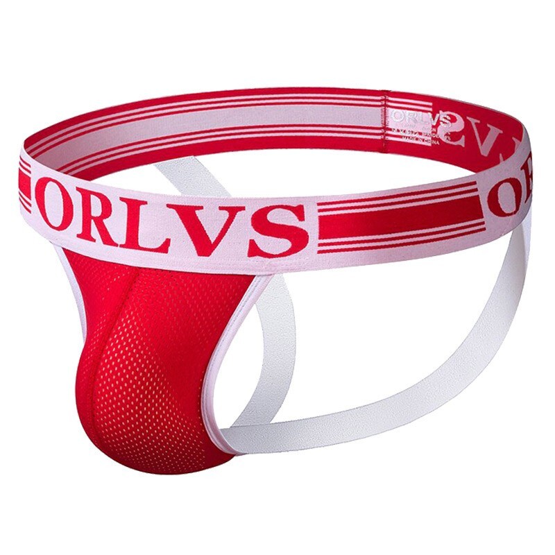 • Еротичні чоловічі труси джоки сітчасті ORLVS червоні з білою резинкою