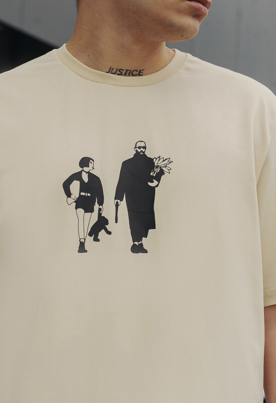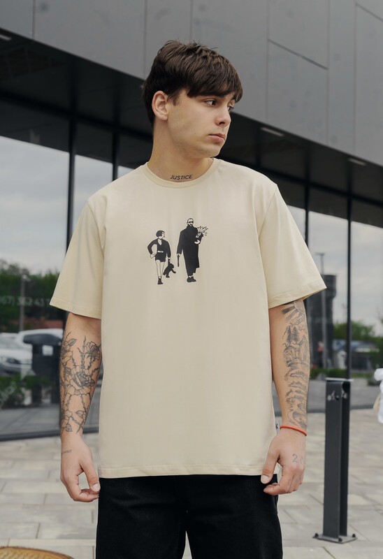 • Футболка молочного кольору із чорним принтом Staff M&L
