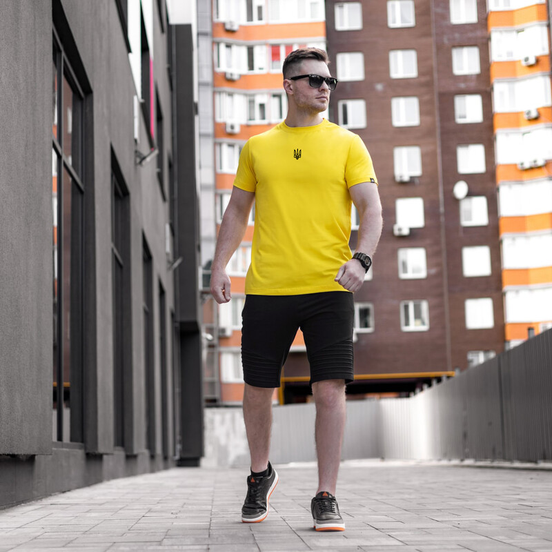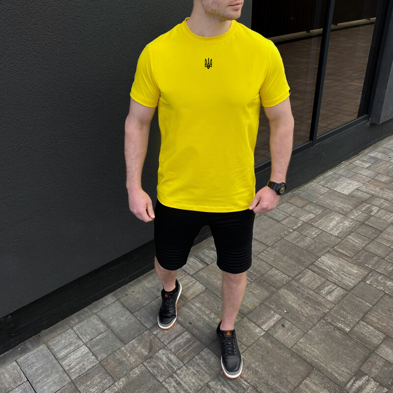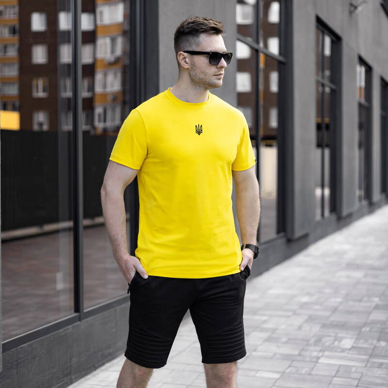 • Футболка Pobedov жовта з чорною вишивкою "Герб України"