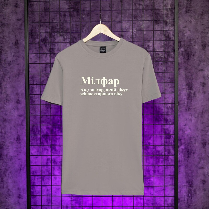 • Футболка сталевого кольору Pobedov Peremoga з принтом