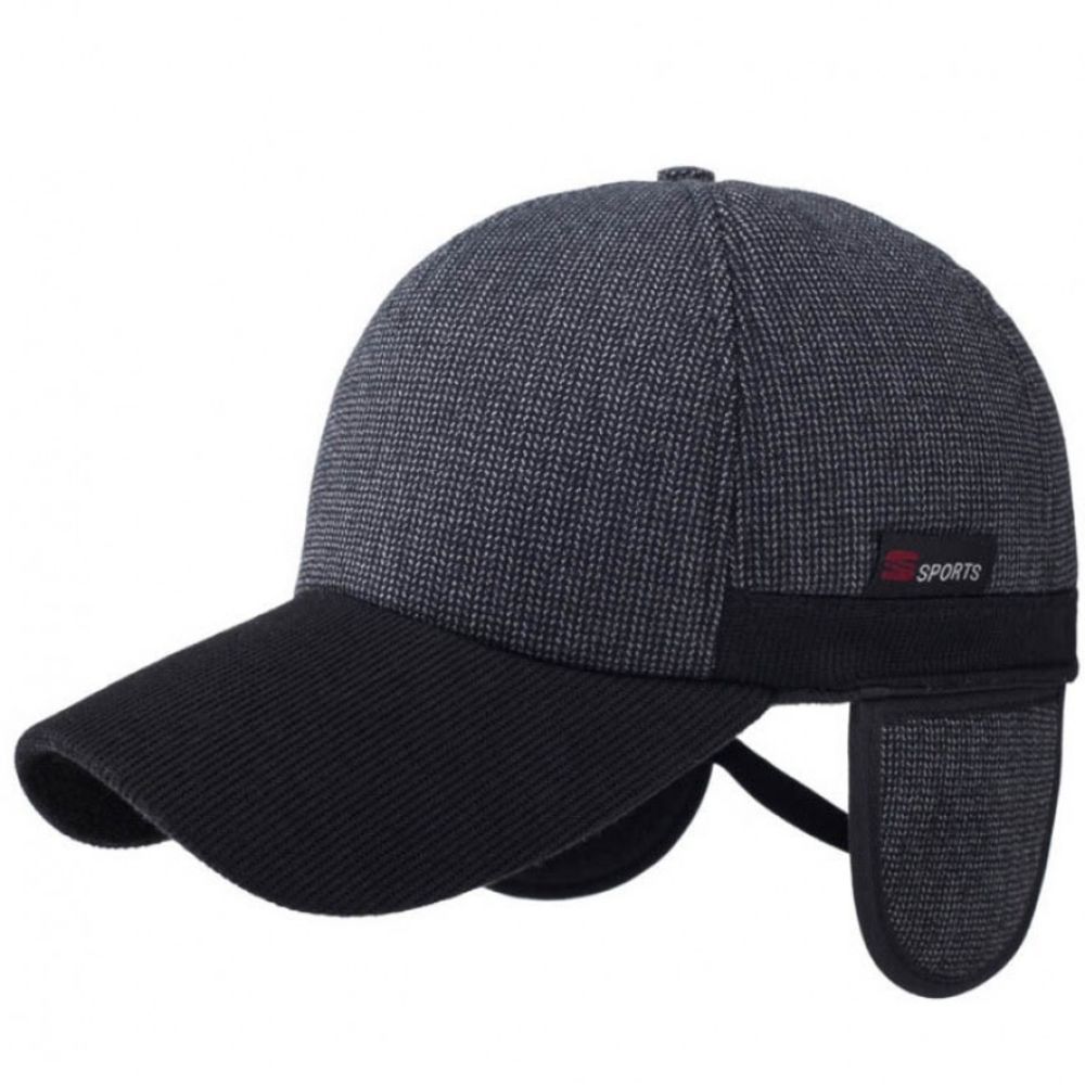 Фото - Сіра бейсболка на зиму від бренду Narason з вушками - Men box