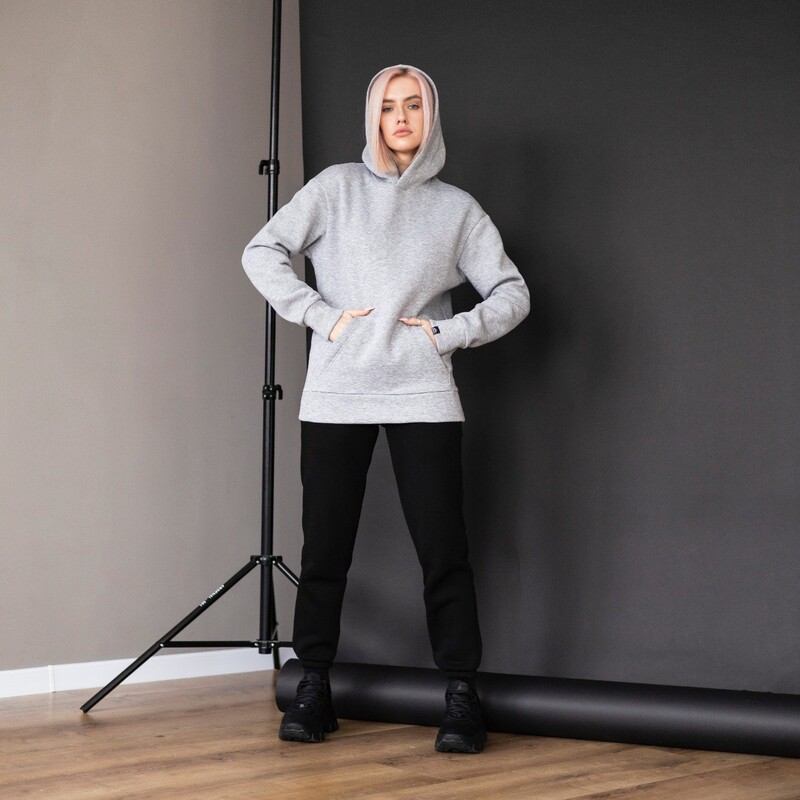 • Худі на флісі Pobedov "007" кольору сірий меланж