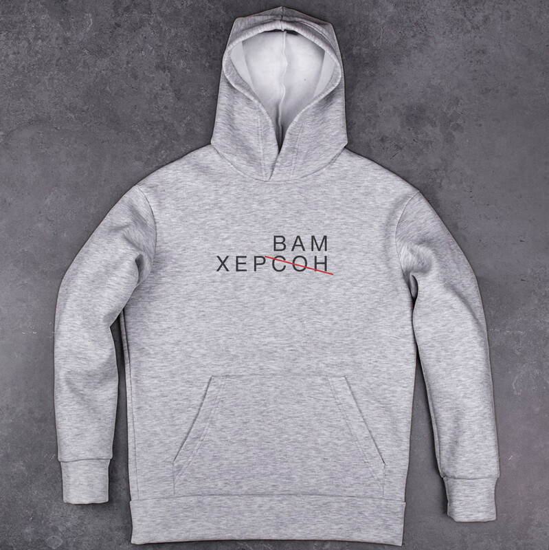 • Худі на флісі Pobedov "Хер вам" кольору сірий меланж