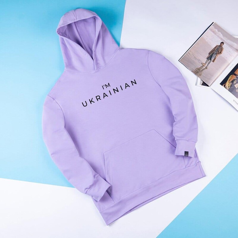 • Худі Pobedov 001 фіолетового кольору з написом I'M UKRAINIAN