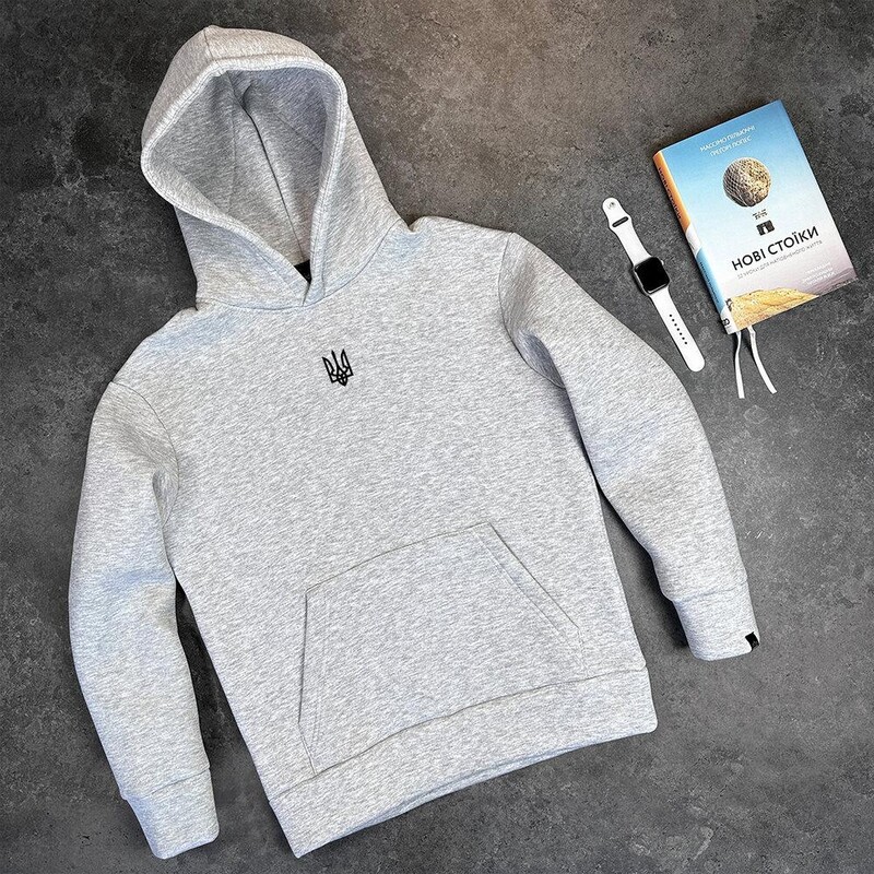 • Худі Pobedov 008 кольору сірий меланж із вишивкою "Герб"