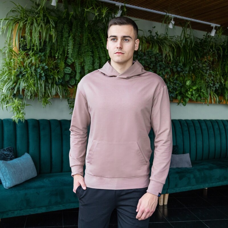 Матеріал: якісна європейська бавовна без начісу (європейський трикотаж двунитка пен'є без утеплювача). Об'ємний, комфортний вшитий капюшон. Кишеня в стилі "кенгуру". Фірмова жаккардова бирка Pobedov