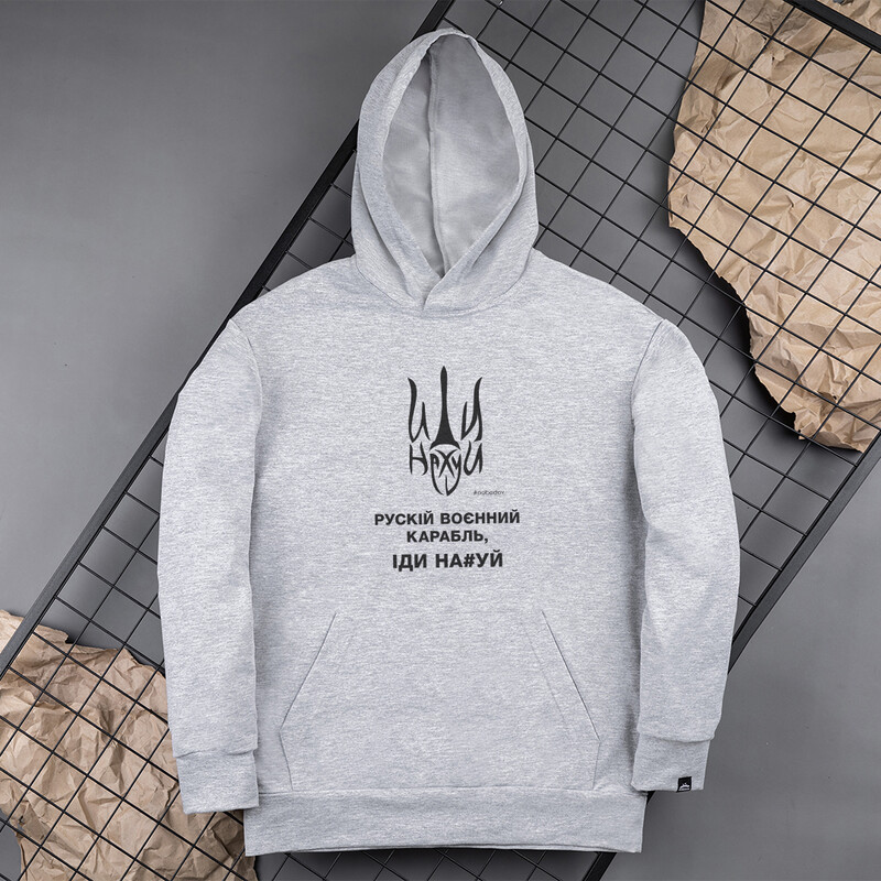 • Худі Pobedov сірий-меланж "Рускій воєнний карабль, іди на#уй"