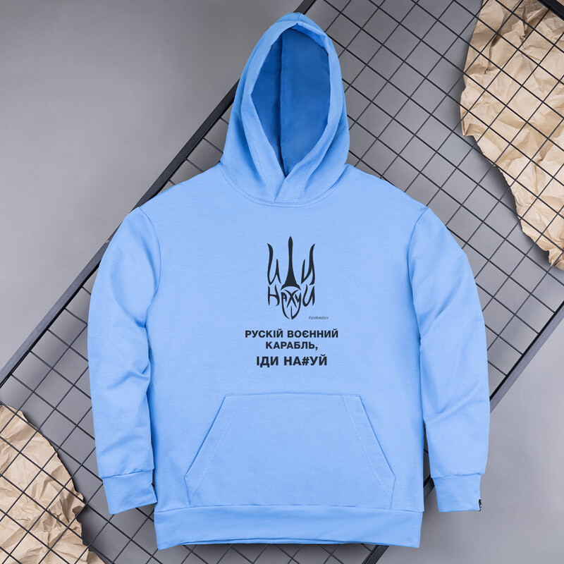 • Худі Pobedov світло-синє "Рускій воєнний карабль, іди на#уй"