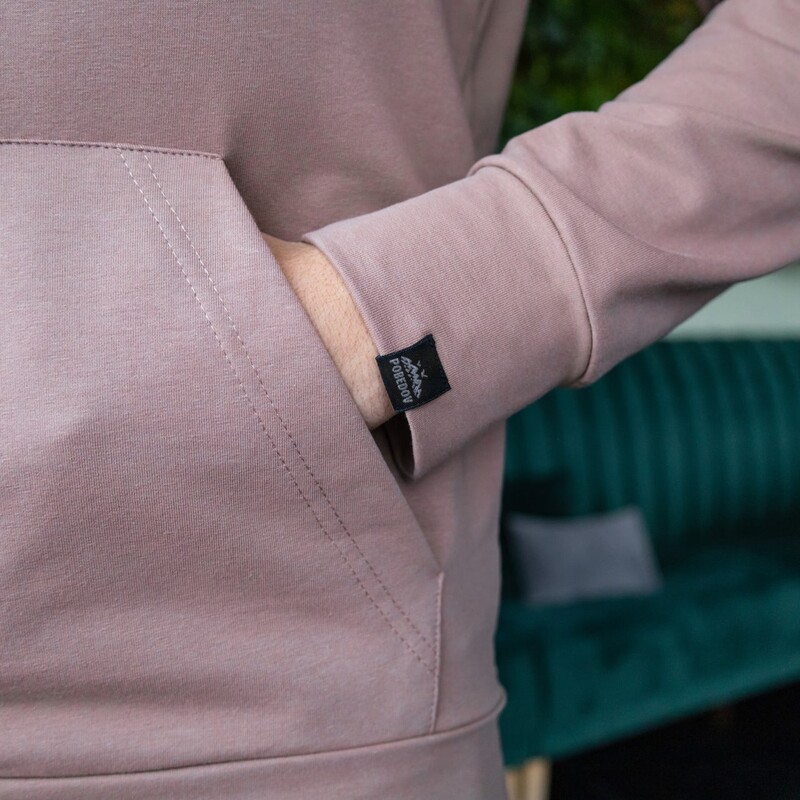 Матеріал: якісна європейська бавовна без начісу (європейський трикотаж двунитка пен'є без утеплювача). Об'ємний, комфортний вшитий капюшон. Кишеня в стилі "кенгуру". Фірмова жаккардова бирка Pobedov