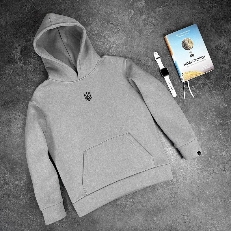 • Худі сталевого кольору Pobedov 008 з вишивкою "Герб"