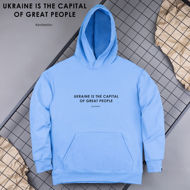 • Худі унісекс Ukraine is від Pobedov світло-синє з кишенею