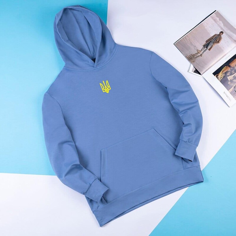 • Худі від бренду Pobedov світло-синє із жовтим гербом