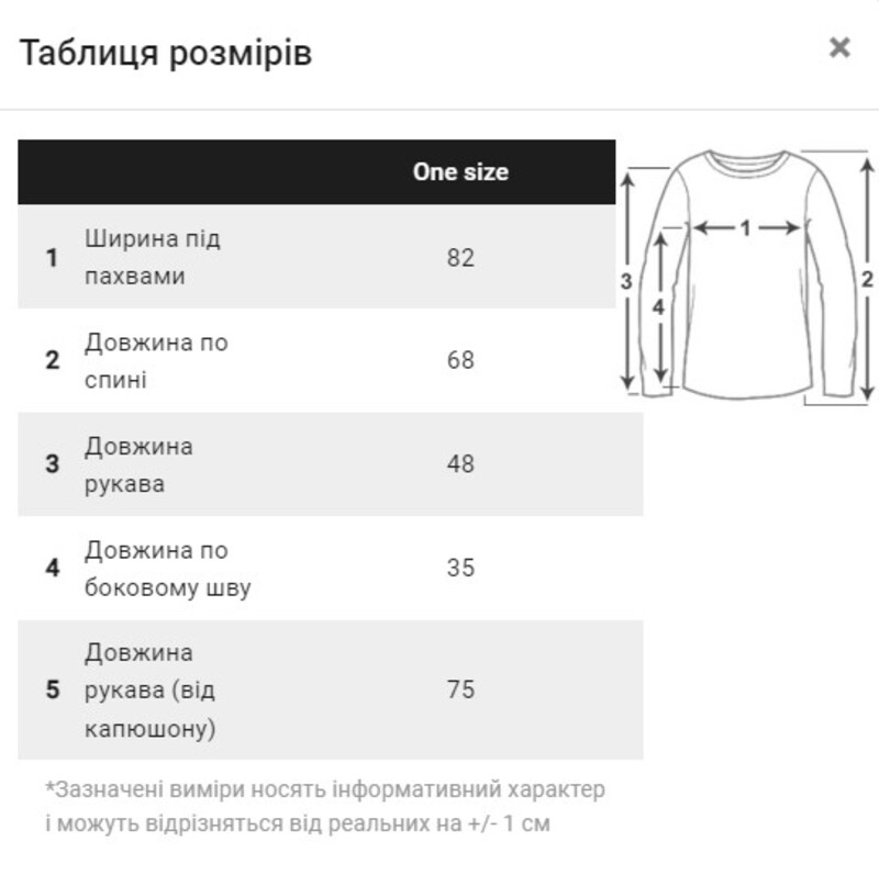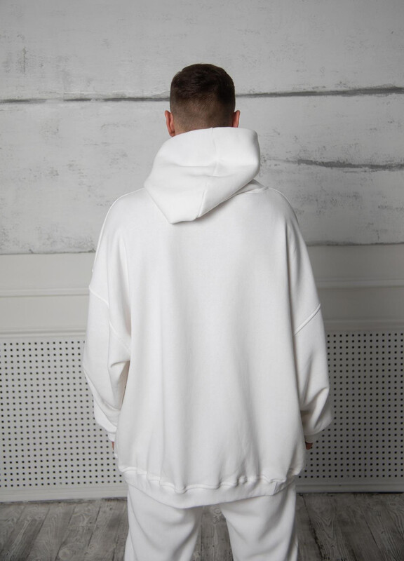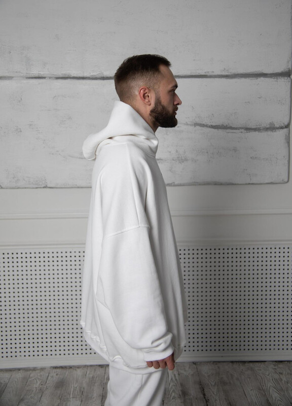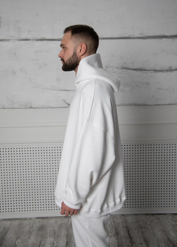 Тканина - пен'є преміум якості на флісі. Вільна модель із заниженою лінією плеча та подвійним, глибоким капюшоном. Рельєфна трикотажна гумка по нижньому краю та низу рукавів. Бічні прорізні кишені
