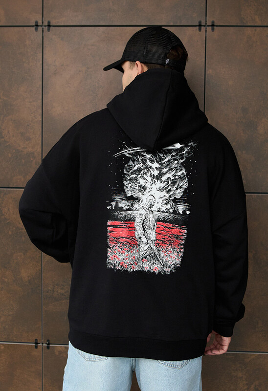 Oversize худі з капюшоном на шнурку, еластичними манжетами та ексклюзивними принтами забезпечить яскравий та стильний образ.