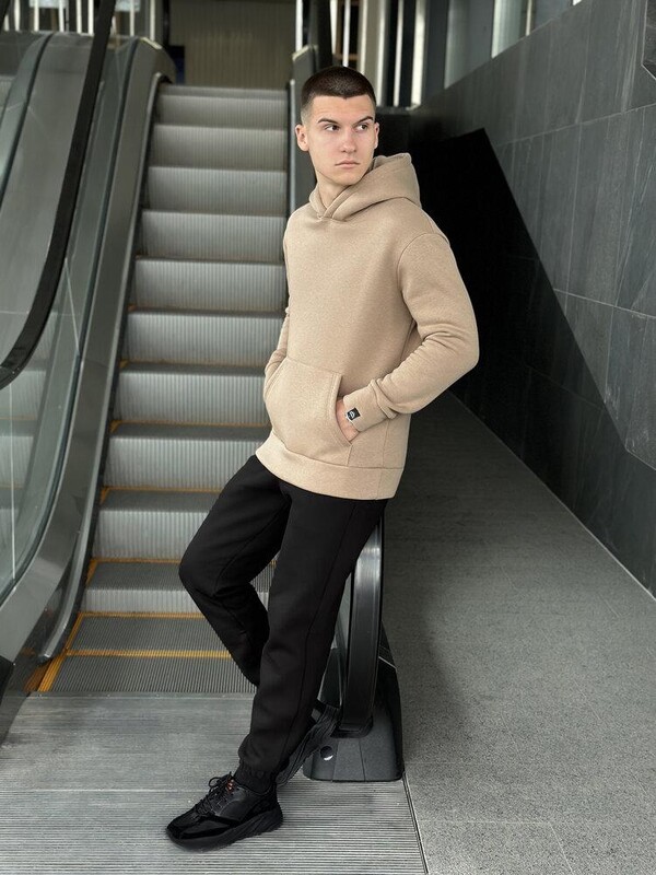 Фото - Тепле молочне худі Pobedov 008 з наклейкою "Герб" - Men box