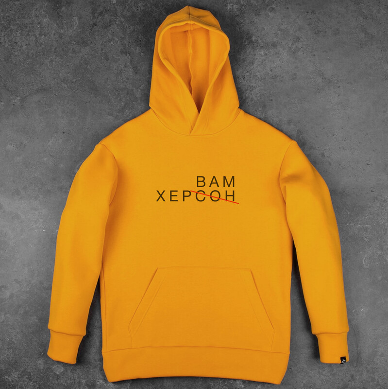 • Худі зимове Pobedov жовтого кольору з написом "Хер вам"