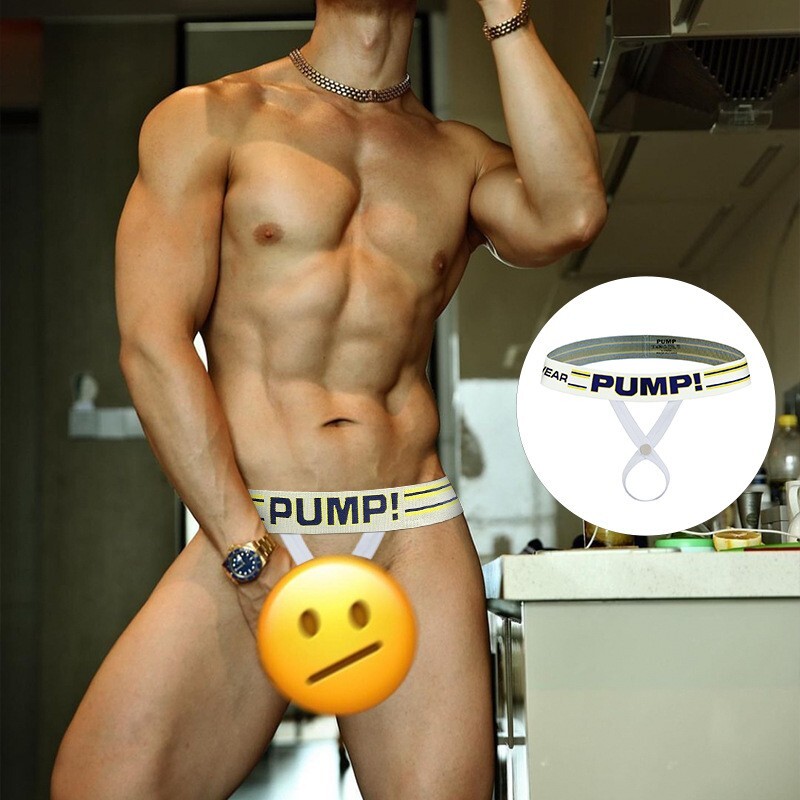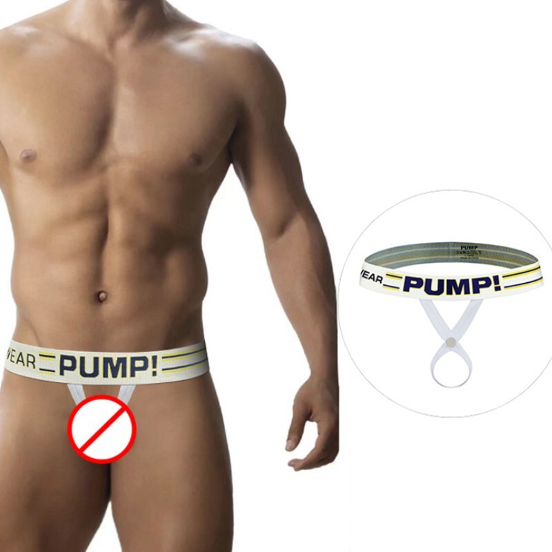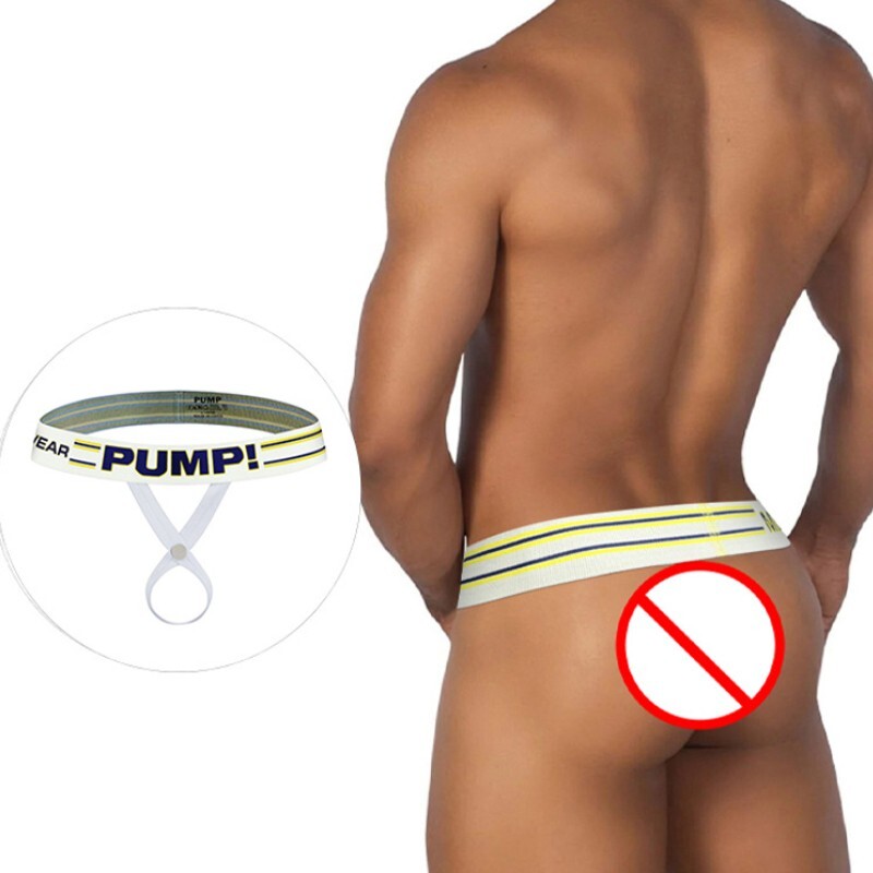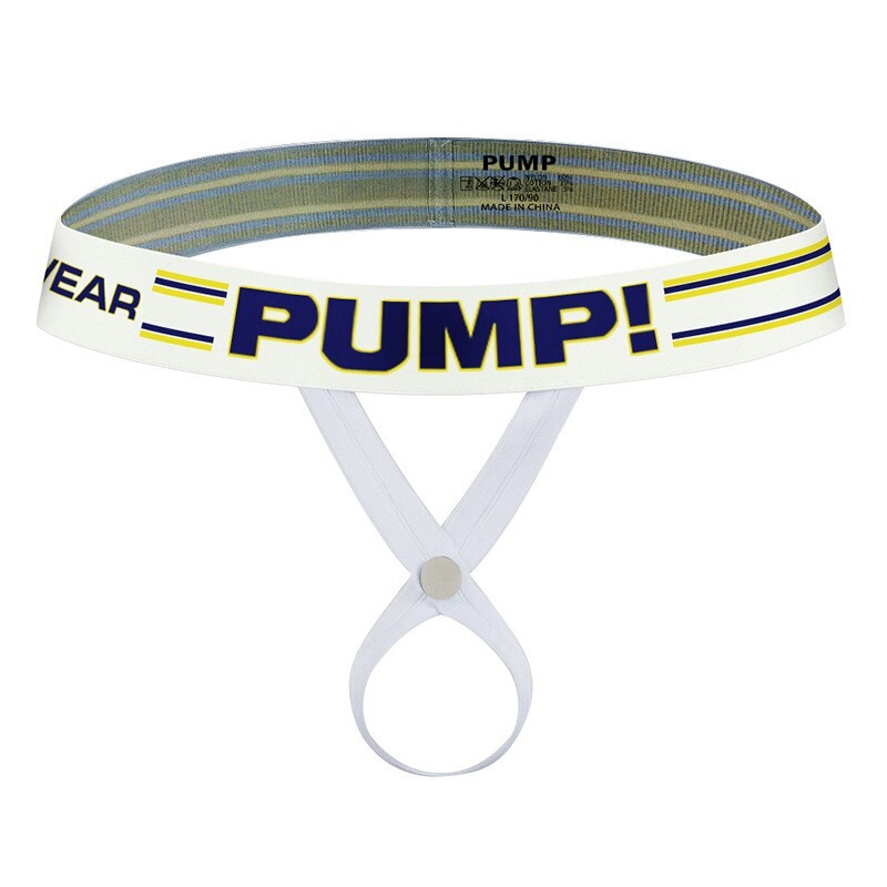 Фото - Чоловічі труси танга Pump білі з яскравою резинкою - Men box