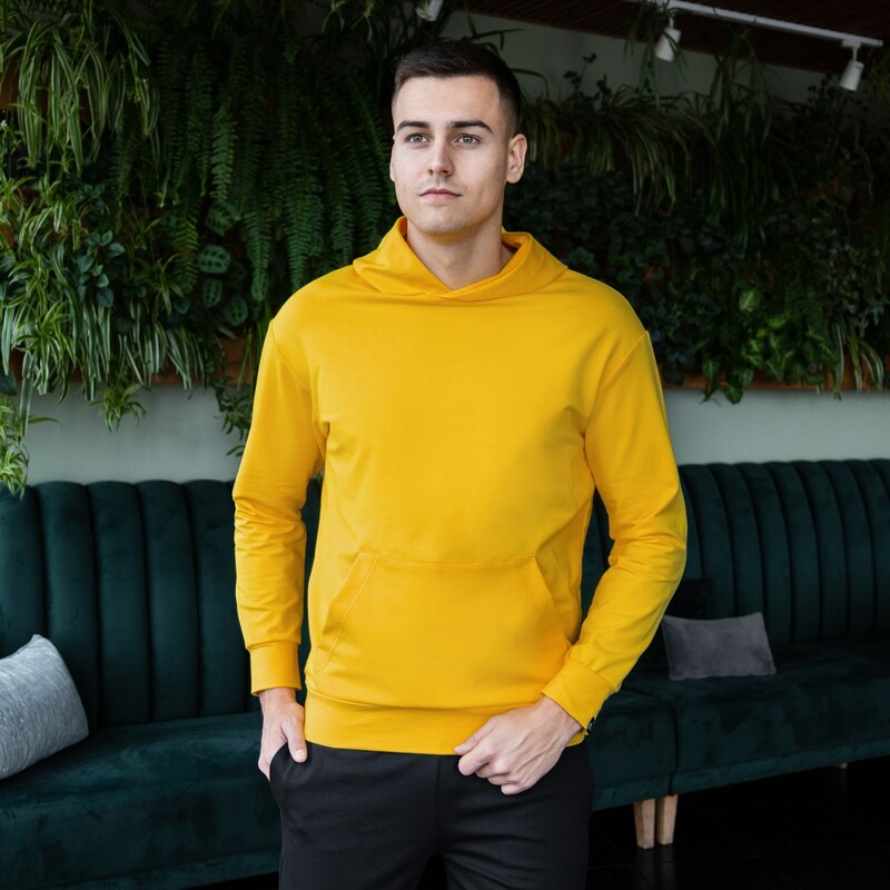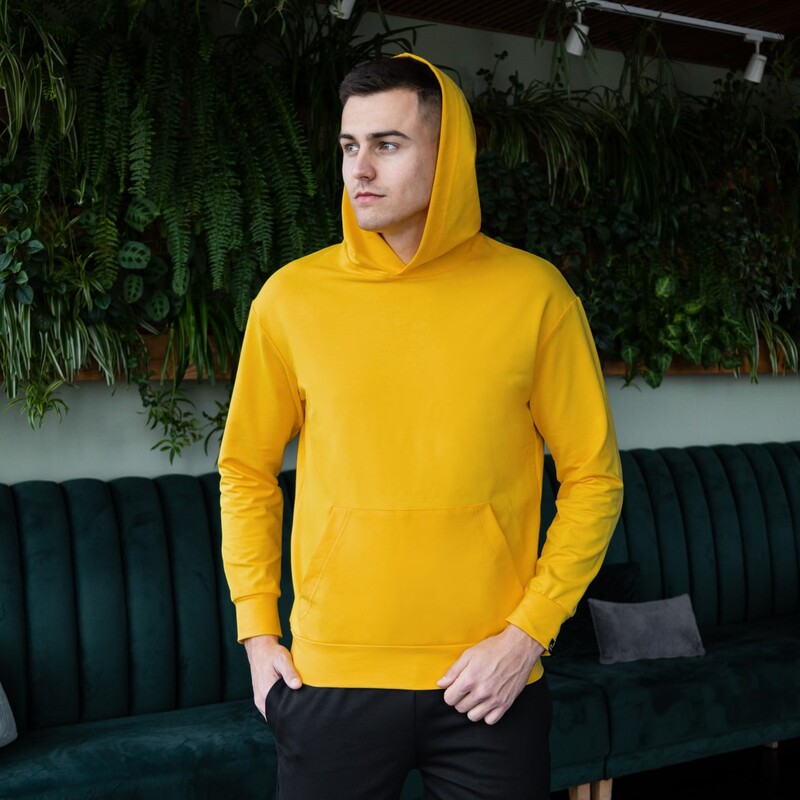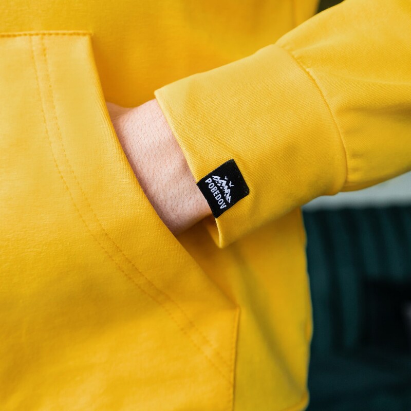 Матеріал: якісна європейська бавовна без начісу (європейський трикотаж двунитка пен'є без утеплювача). Об'ємний, комфортний вшитий капюшон. Кишеня в стилі "кенгуру". Фірмова жаккардова бирка Pobedov
