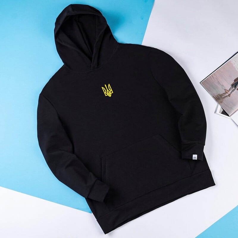 Фото - Базове тепле худі Pobedov 008 чорне з вишивкою "Герб" - Men box