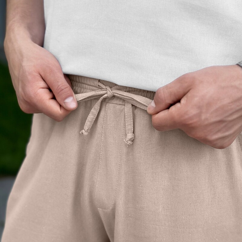 Склад тканини включає льон, бавовну і віскозу. Це надає шортам приємну на дотик текстуру, вони "дихають" і не викликають алергічних реакцій. Шорти мають вільний крій, що гарантує відмінну посадку на будь-якій фігурі.