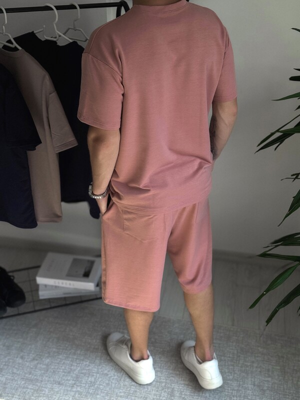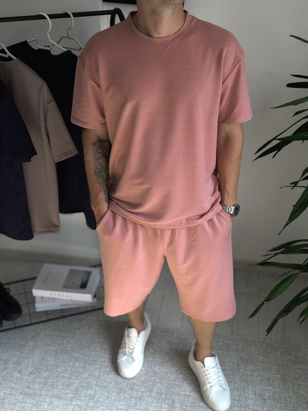 Чоловічий костюм Intruder теракотового кольору — це свіжий акцент у гардеробі на весну та літо. Теплий природний відтінок виглядає виразно й сучасно, виділяючи вас із натовпу. Комплект виготовлений із приємної на дотик двунитки, яка добре пропускає повітря й забезпечує комфорт у спекотну погоду. Прямий крій футболки та класична кругла горловина підкреслюють універсальність моделі. Шорти на вставній резинці, завдовжки до коліна й з чотирма кишенями — це практичність і зручність в одному. Чудовий вибір для прогулянок, відпочинку й активних вихідних.