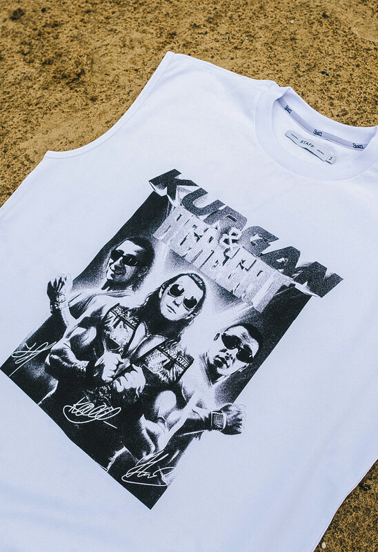 Спільно з хлопцями команда #Staffclothes розробила футболки, майки, шорти-плавки, фірмові окуляри гурту, шкарпетки та сумку через плече — із матеріалу тієї самої клєтчатої сумки.