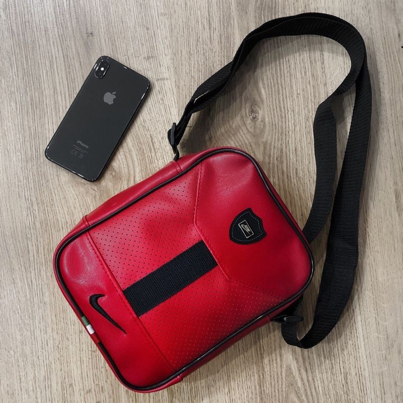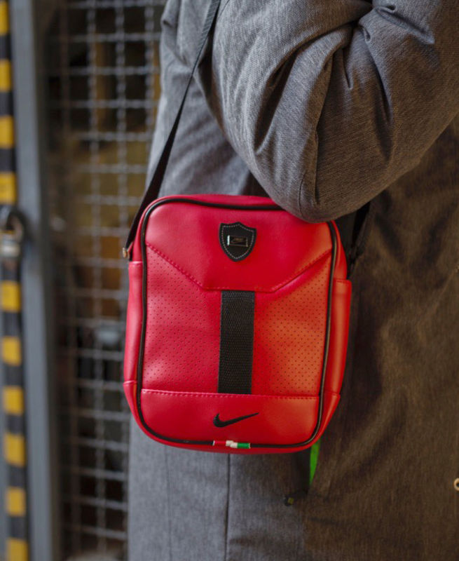• Модна барсетка для чоловіків червоного кольору зі шкірозамінника