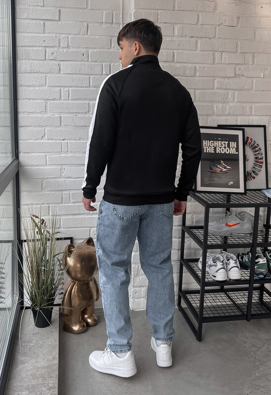 Олімпійка зі вставками-смужками вздовж рукавів і вишитим на грудях логотипом не сковує рухів та не мнеться, створюючи зручний образ на щодень.