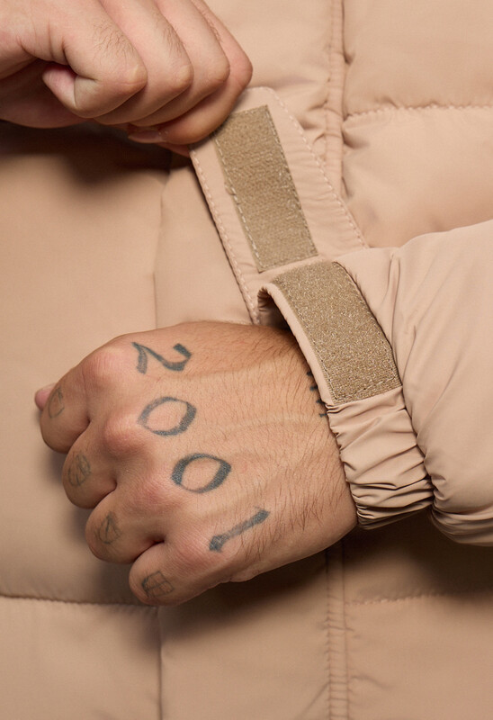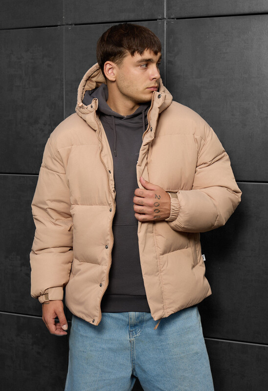 Огорніть себе розкішшю тепла та трендового стилю з цією об'ємною курткою крою oversize у благородному бежевому кольорі. Ця модель — справжній маніфест зимового комфорту, оснащена подвійним утепленням (Termoloft та Hollowsoft), що гарантує надійний захист від холоду та вітру, забезпечуючи тепло навіть у люті морози. Завдяки вільному крою зі спущеними плечима, куртка легко комбінується з одягом у різних стилях, створюючи яскравий та актуальний образ. Затишний об'ємний капюшон регулюється шнуром. Центральна тракторна блискавка прихована під вітрозахисною планкою на кнопках, а функціональність підкреслюють чотири кишені на блискавці (дві зовнішні, прикритих планкою, та дві внутрішні). Манжети на липучках та еластична стяжка по низу дозволяють ідеально фіксувати силует та утримувати тепло