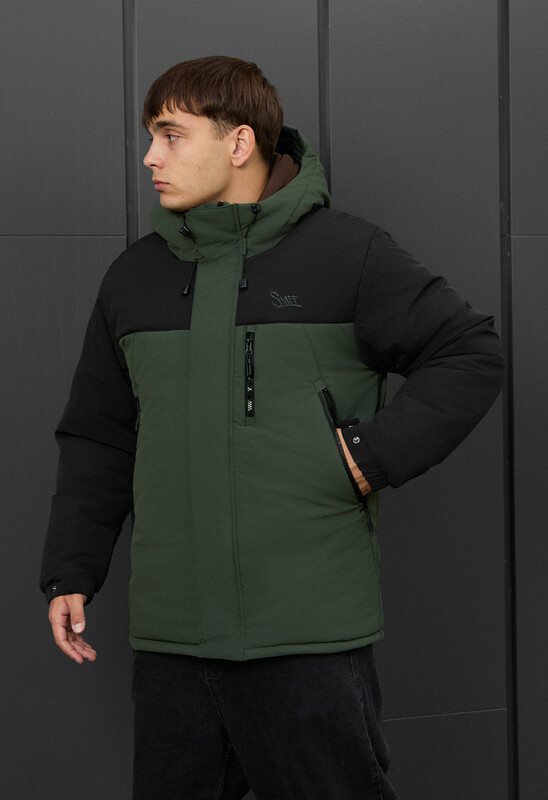 Стильна зимова куртка у поєднанні чорного та хакі створена для максимального комфорту й захисту в холодну пору. Якісний утеплювач Hollowsoft та вологовідштовхуюча мембрана ефективно зберігають тепло та не пропускають вітер і опади. Класичний крій, висока горловина з капюшоном та регульовані манжети забезпечують зручну посадку. Практичні кишені на блискавках додають функціональності, а фірмова вишивка підкреслює стиль. Ідеальний вибір для зими від 0 до -20°C.