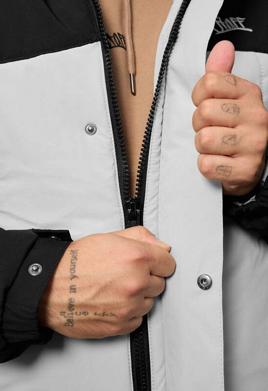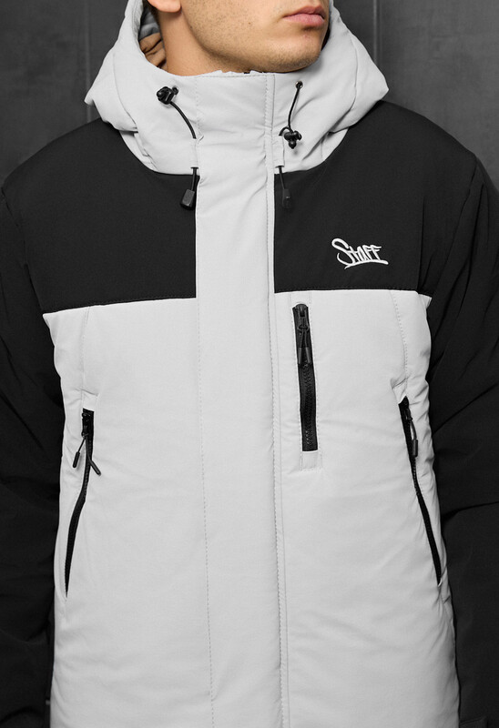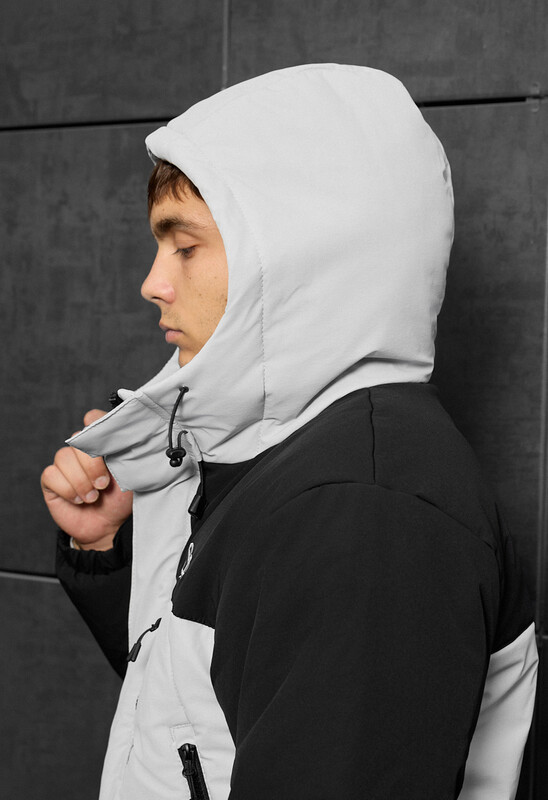 Стильна зимова куртка чорного та світло-сірого кольору поєднує захист і комфорт навіть за температури до -20°C. Вологовідштовхуюча мембрана та утеплювач Hollowsoft забезпечують тепло без обтяження. Висока горловина з регульованим капюшоном, манжети на резинках із кнопками та вітрозахисна планка гарантують надійну ізоляцію від негоди. Практичність додають п’ять кишень на блискавках, а фірмова вишивка підкреслює стиль. Ідеальний вибір для щоденного зимового образу.