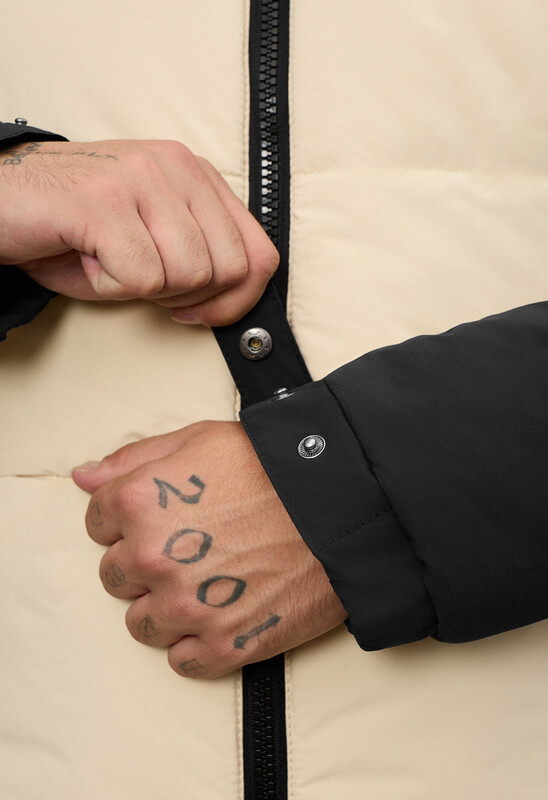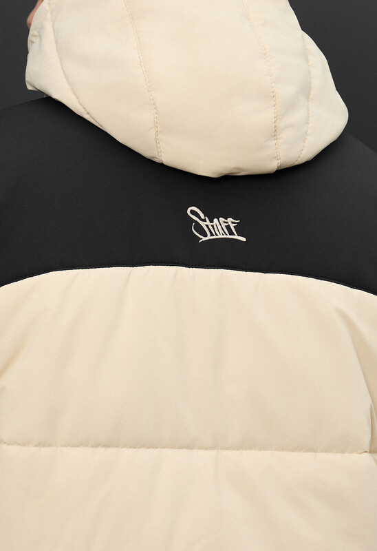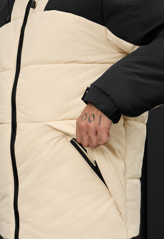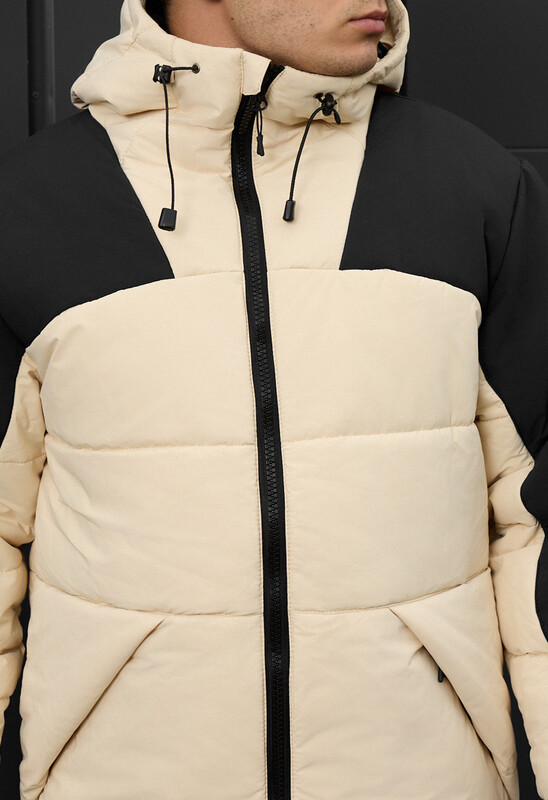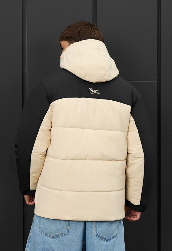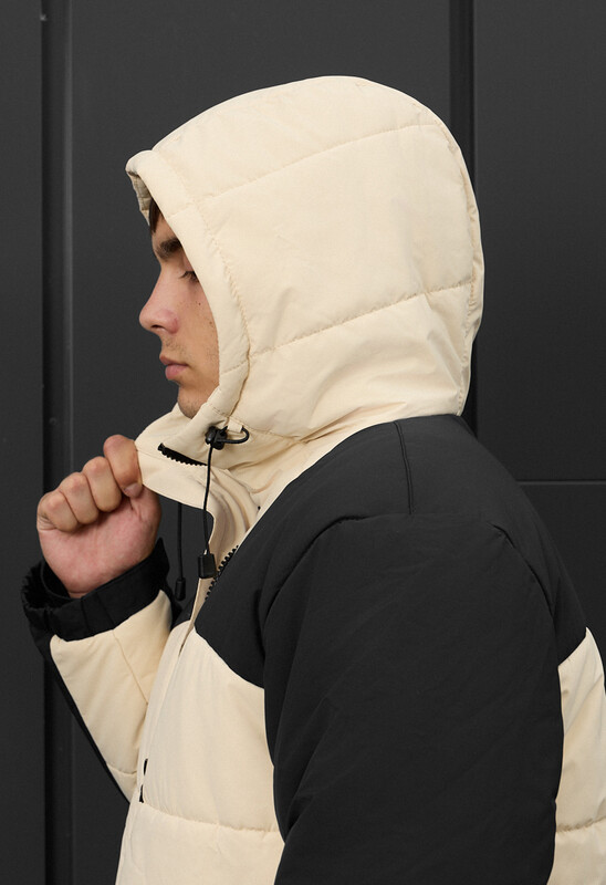 Зимова куртка у молочно-чорному кольорі — поєднання стилю, тепла та практичності. Міцний водо- і вітронепроникний матеріал гарантує захист у холодну пору, а утеплювач Hollowsoft зберігає тепло навіть при -20°C. Об’ємний капюшон зі шнурами та манжети з кнопками створюють комфорт, а вишивка з логотипом бренду на спині додає індивідуальності. Куртка не мнеться, легко доглядається й пасує до будь-якого образу — від спортивного до повсякденного.