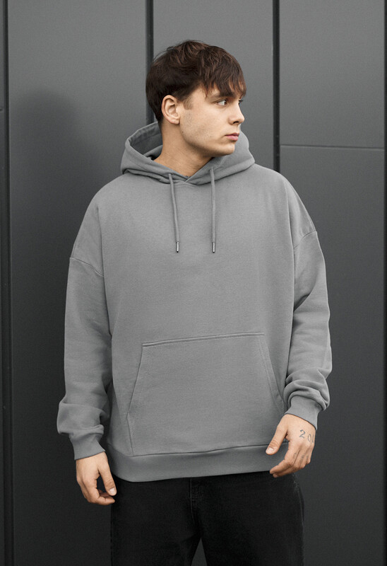 Сіре худі в посадці oversize створене для стильних та виразних повсякденних образів. Вільний крій, регульований шнурком капюшон і еластичні манжети забезпечують комфорт і свободу рухів, а кишеня-кенгуру додає практичності. Виготовлене з 100% преміальної європейської бавовни, м’яке на дотик і стійке до зношування. Якісний принт на спині та лаконічна бірка з логотипом у боковому шві підкреслюють сучасний стиль і увагу до деталей.