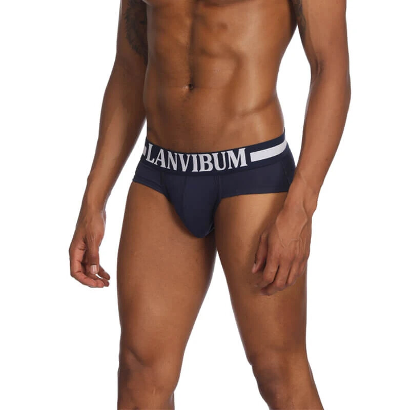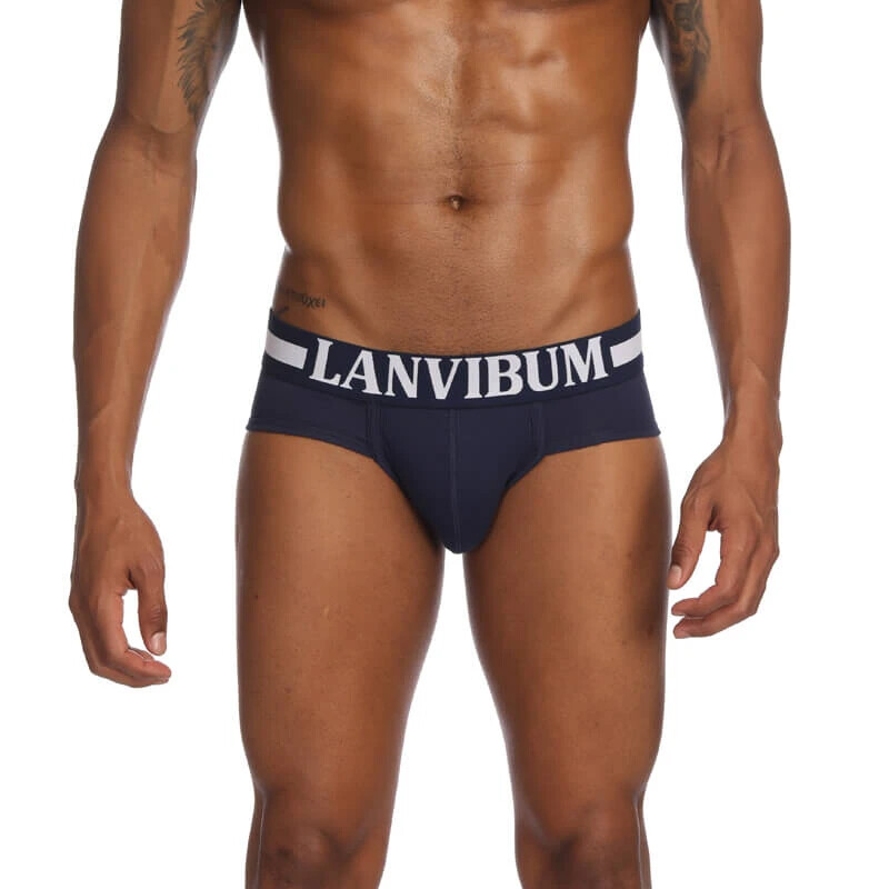 Комфортні і сексуальні бріфи для тих, хто цінує стильний дизайн і високу якість елітної нижньої білизни. Труси зроблені одним з кращих дизайнерських будинків - популярним брендом Lanvibum. Ефектний крій брифів дозволить вам виглядати яскраво і еротично: середня посадка добре демонструє ефектний торс, а також привертає увагу до інтимної зони, яка має особливий крій. М'яка високоякісна бавовна, застосовувана при пошитті трусів, дає відчуття надзвичайного комфорту. Дизайн моделі досить незвичайний: поєднання традиційного темно-синього кольору з широкою брендованою резинкою, корегує область живота. Елітну нижню білизну Lanvibum можна купити в нашому інтернет-магазині Menbox. Крім цього, у нас продаються інші види високоякісної брендової чоловічої білизни за оптимальними цінами. Нижня білизна вищого розряду - це гідний показник якості життя.