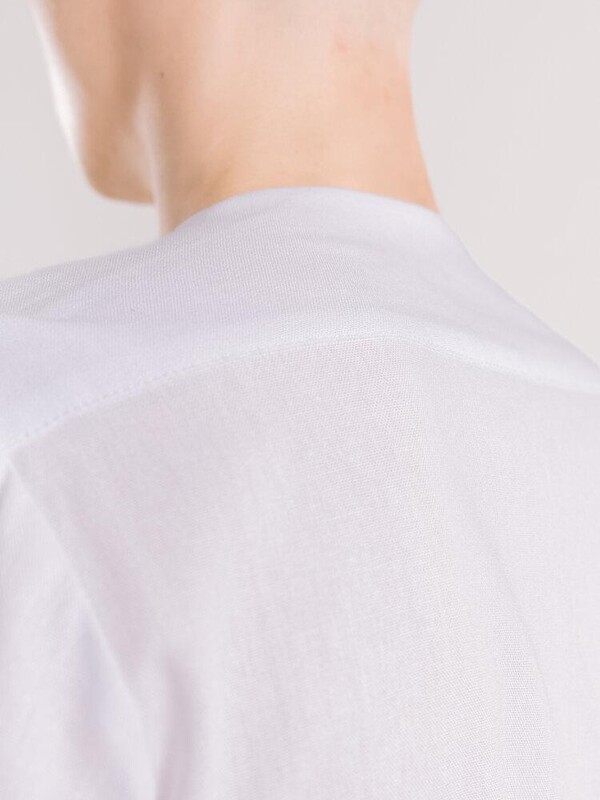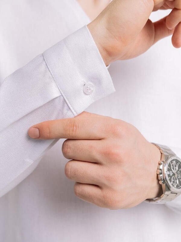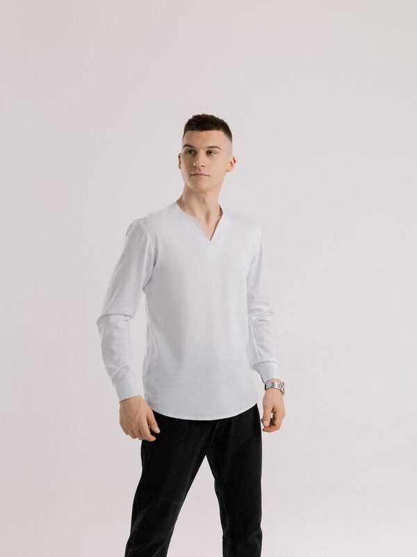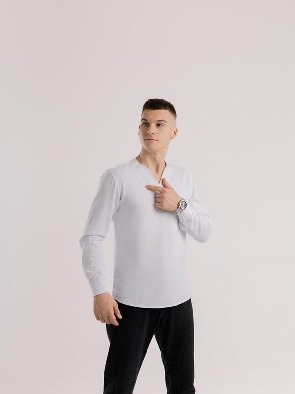 Біла сорочка Pobedov — це універсальний елемент літнього гардероба, який освіжає образ і робить його візуально легшим. Прямий крій забезпечує комфортну посадку, не сковуючи рухів. Відкритий V-подібний виріз без ґудзиків підкреслює сучасність моделі, а манжети на ґудзиках надають їй завершеного, охайного вигляду. Білий колір чудово підкреслює засмагу та легко поєднується з будь-якою базою — від джинсів до світлих чіносів. Ідеальний варіант для стилю смарт-кежуал у спекотну погоду.