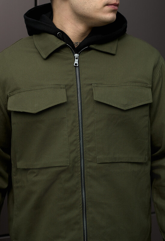 - дві прорізні кишені знизу і дві нагрудні накладні, прикриті планкою на кнопках;