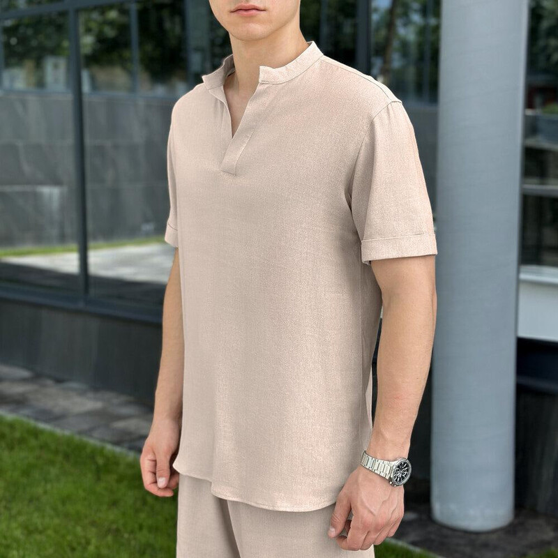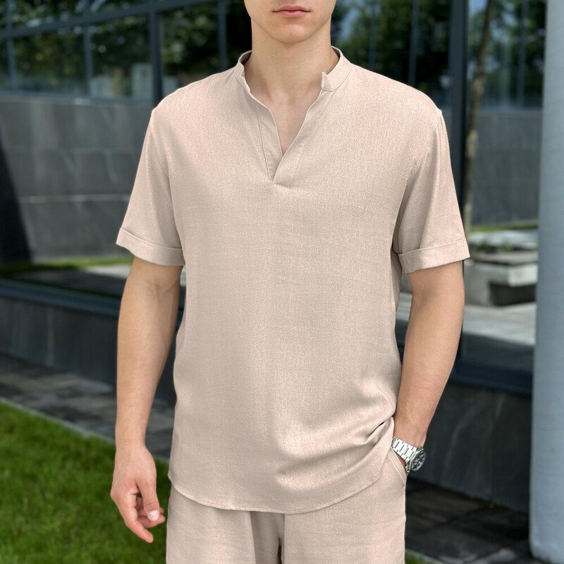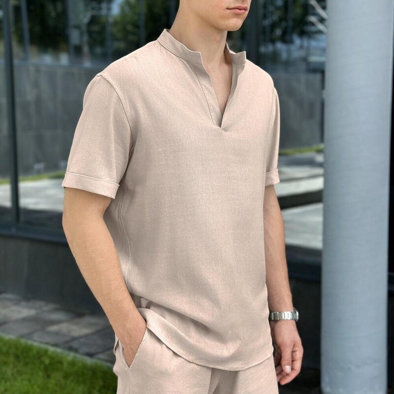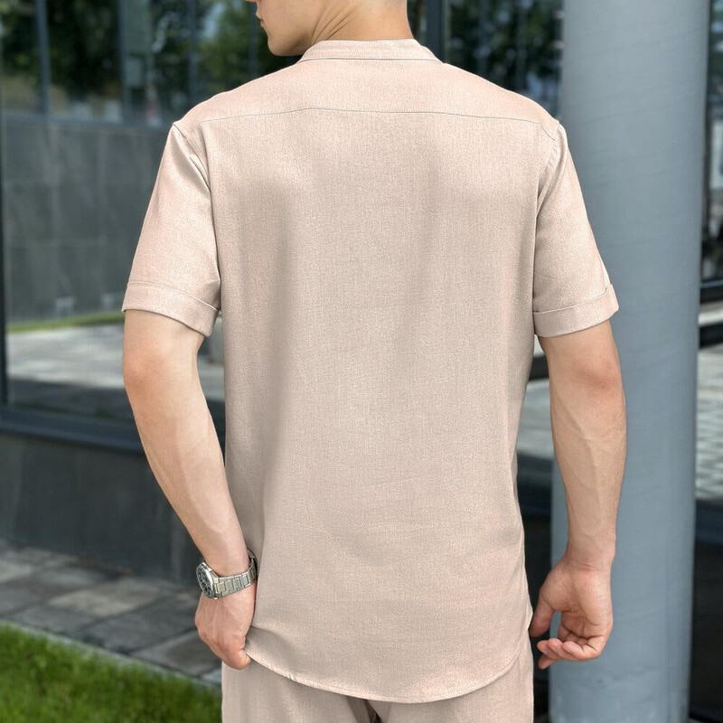 Кремова сорочка Pobedov Misto — це сучасна інтерпретація класики з м’яким характером. Світлий нейтральний відтінок надає образу спокою, а продуманий крій робить її зручною та практичною. Прямий силует не обмежує рухів, комір-стійка підкреслює чіткість ліній, а V-подібний виріз додає легкості. Кремовий колір гармонійно поєднується з одягом базових тонів і чудово підходить для теплої пори року. Носіть цю сорочку зі штанами, шортами або джинсами — вона легко впишеться у ваш повсякденний гардероб і додасть образу інтелігентності та стилю.