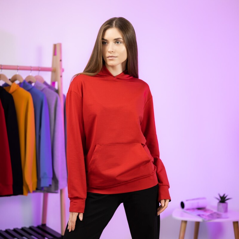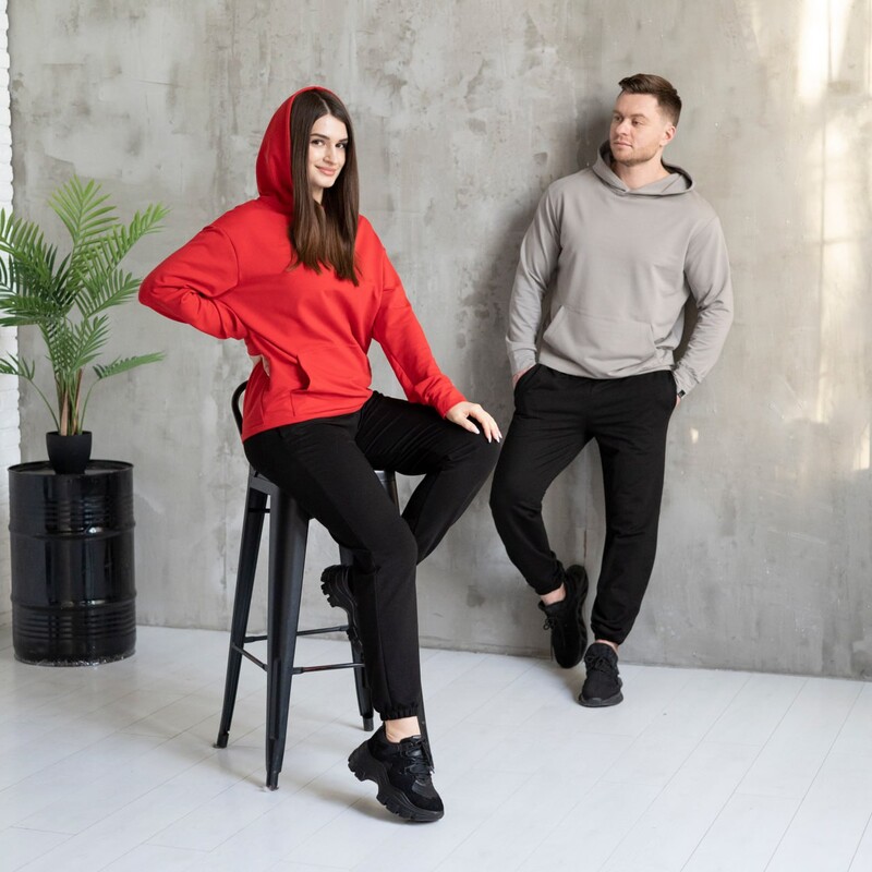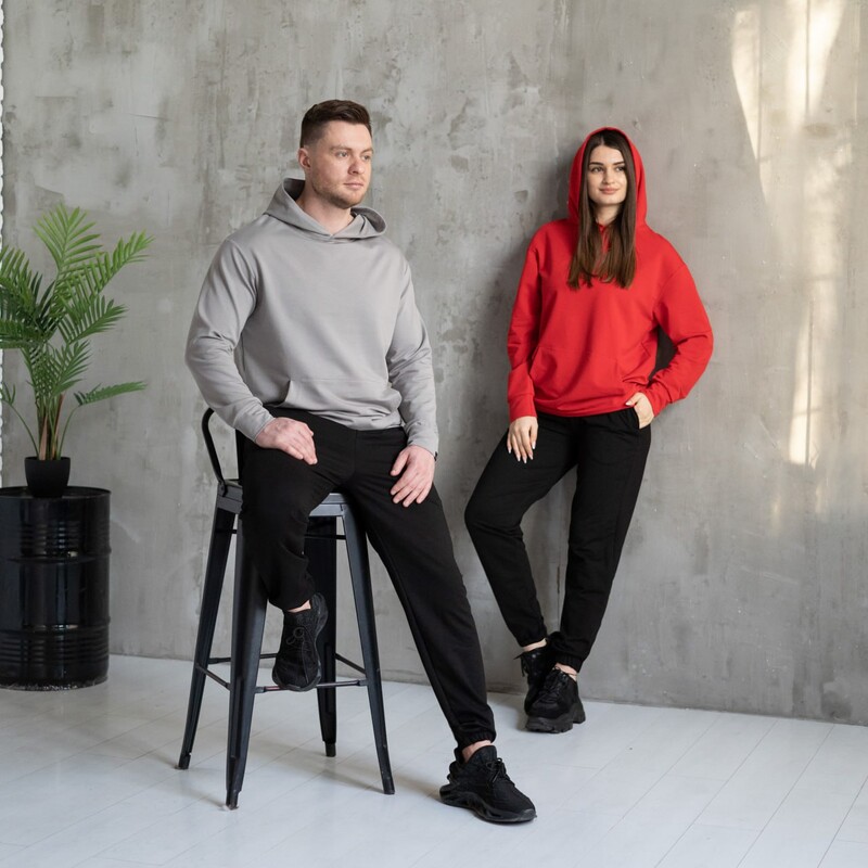 Матеріал: якісна турецька двунитка, не линяє та не кашлатиться. Через високий вміст бавовни тканина не парить. Об'ємний, подвійний вшитий капюшон (з внутрішньої сторони закритий такою ж тканиною, що і верх худі). Кишеня в стилі "кенгуру"