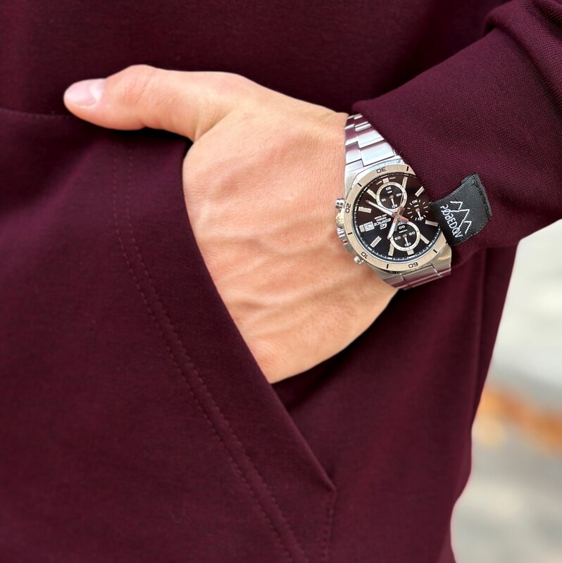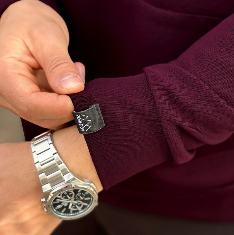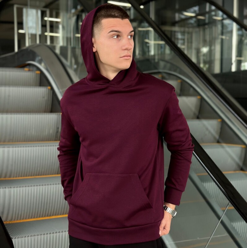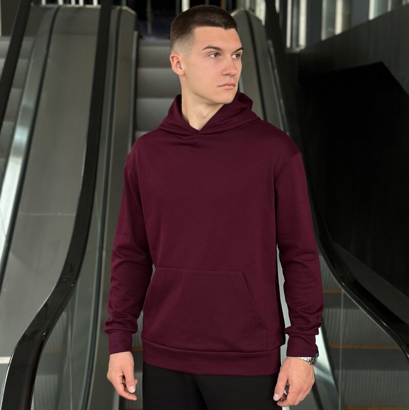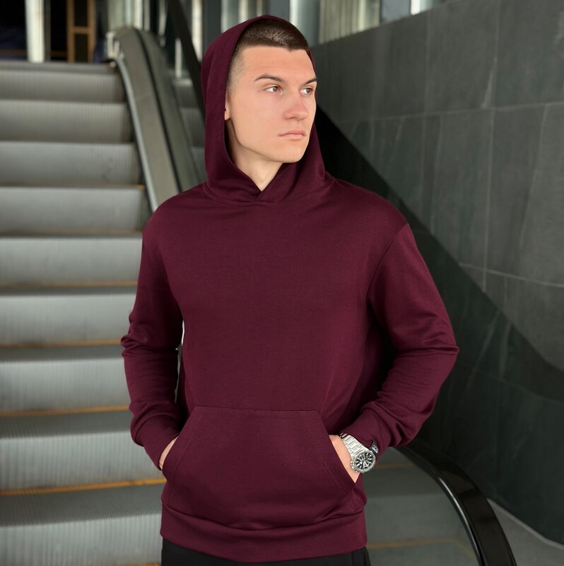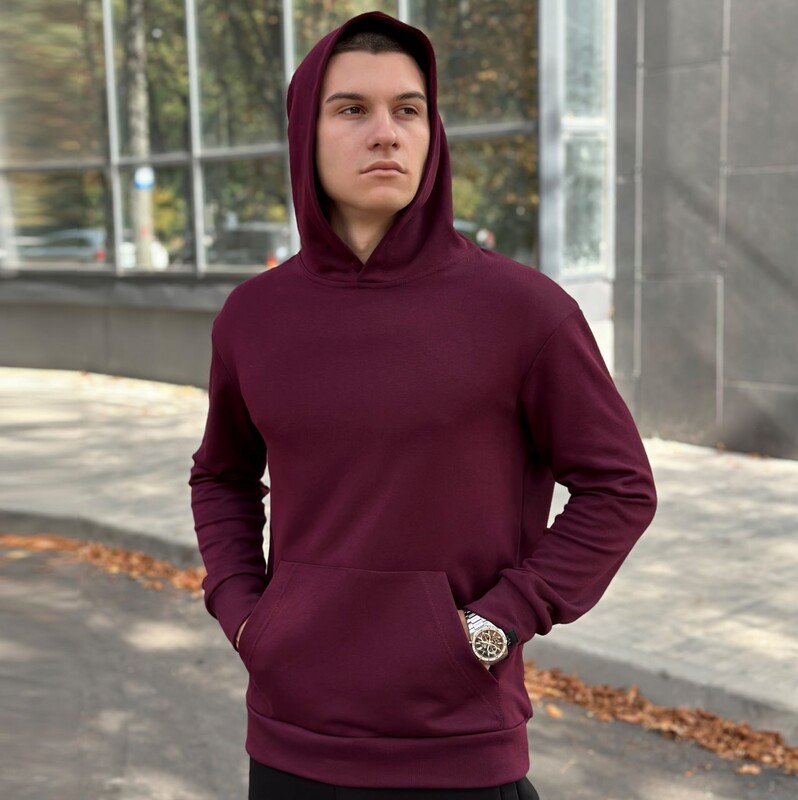 • Однотонне худі для чоловіків від Pobedov бордового кольору