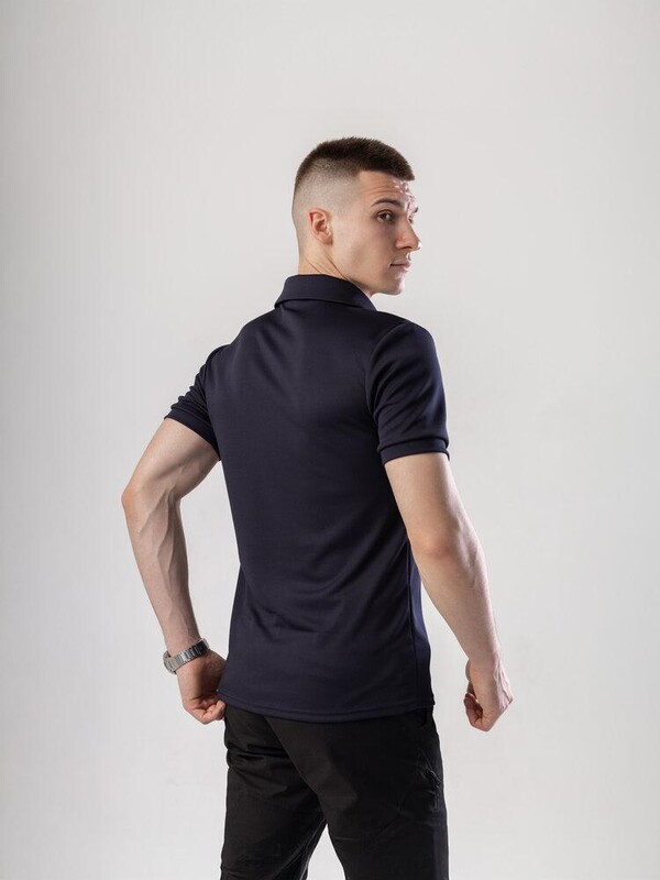 • Однотонне поло темно-синього кольору від бренду Pobedov Recon