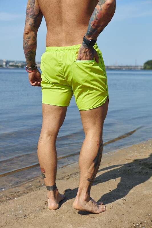 Салатові шорти Intruder — свіжість і яскравість в одному образі. Цей світлий, освіжаючий колір особливо добре виглядає на тлі літнього сонця. Легкий матеріал приємний до тіла та не втрачає форму після прання. Еластичний пояс і шнурок дозволяють підігнати посадку по фігурі. Шорти оснащені двома боковими кишенями на блискавках і задньою кишенею. Усередині — сітчаста підкладка для комфорту. Ця модель підійде для пляжного відпочинку, прогулянок і активного дозвілля. Зроблено в Україні — якість і стиль на кожен день.