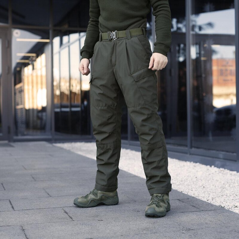 • Однотонні теплі штани Pobedov Fight у кольорі хакі