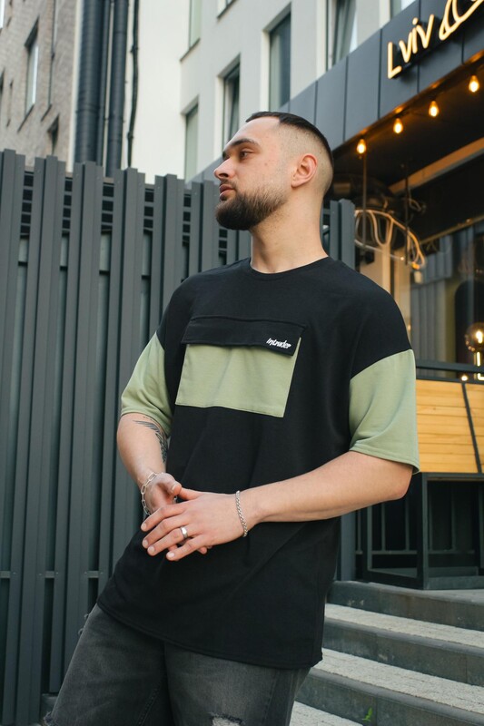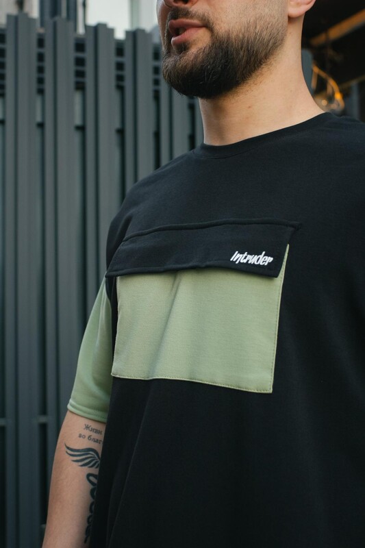Фото - Оверсайз футболка Intruder FreeDom з кишенею чорна з оливою - Men box