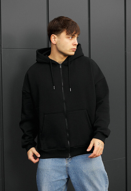 Поєднання функціональності та трендового крою: худі на блискавці, що дарує тепло та безмежні можливості для стилізації! Це тепле oversize худі у класичному чорному кольорі з якісним утеплювачем захищає від холоду та завдяки замку-блискавці легко дозволяє експериментувати з образами. Виріб виготовлений з якісної європейської 100% бавовни, утеплений мікрофлісом преміумкласу (сезон осінь/зима), що гарантує максимальний комфорт та м'якість. Худі оснащено якісним замком-блискавкою, який іде через високу горловину, що переходить у капюшон.