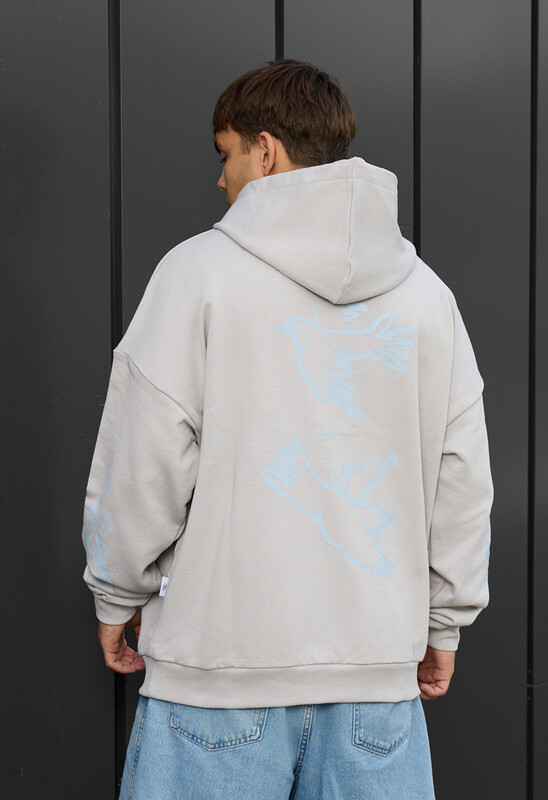 Oversize худі з капюшоном на шнурку, еластичними манжетами та ексклюзивними принтами забезпечить яскравий та стильний образ.