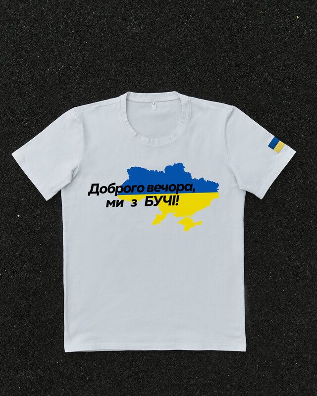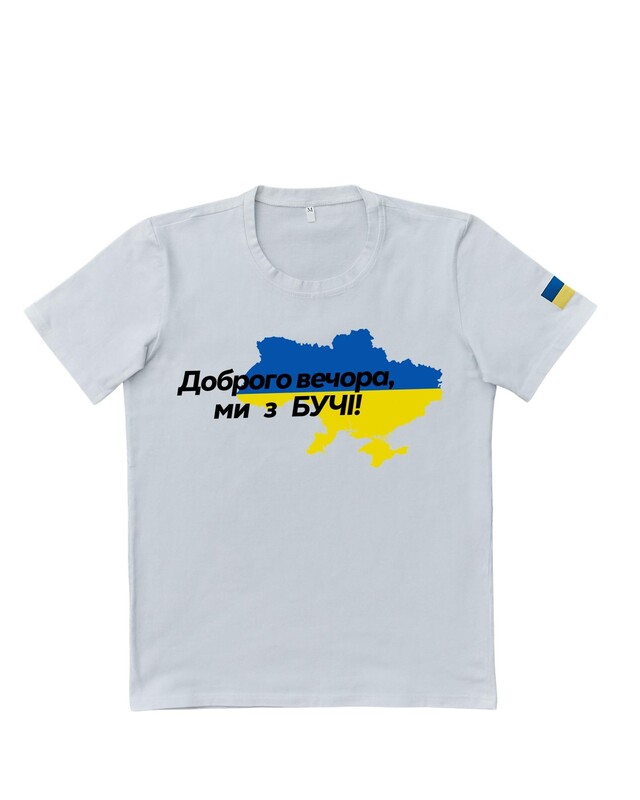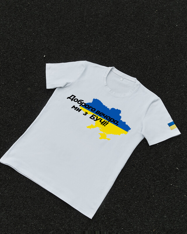 • Патріотична біла футболка "Доброго вечора ми з БУЧІ"