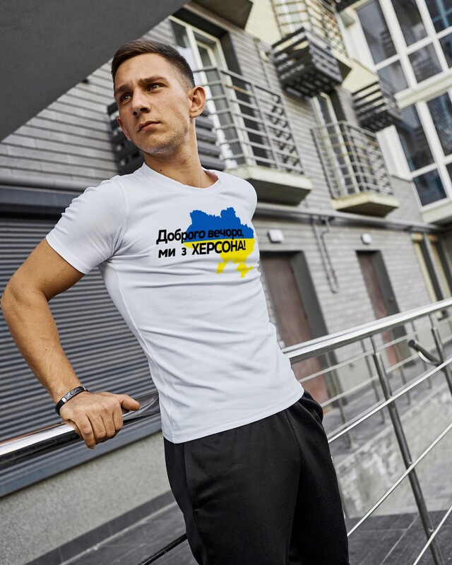 Фото - Патріотична біла футболка "Доброго вечора ми з ХЕРСОНА" - Men box