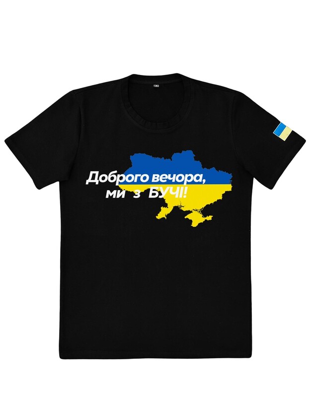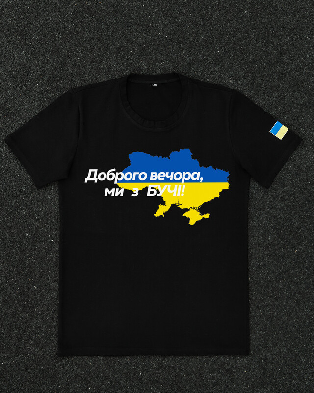 • Патріотична чорна футболка "Доброго вечора ми з БУЧІ"
