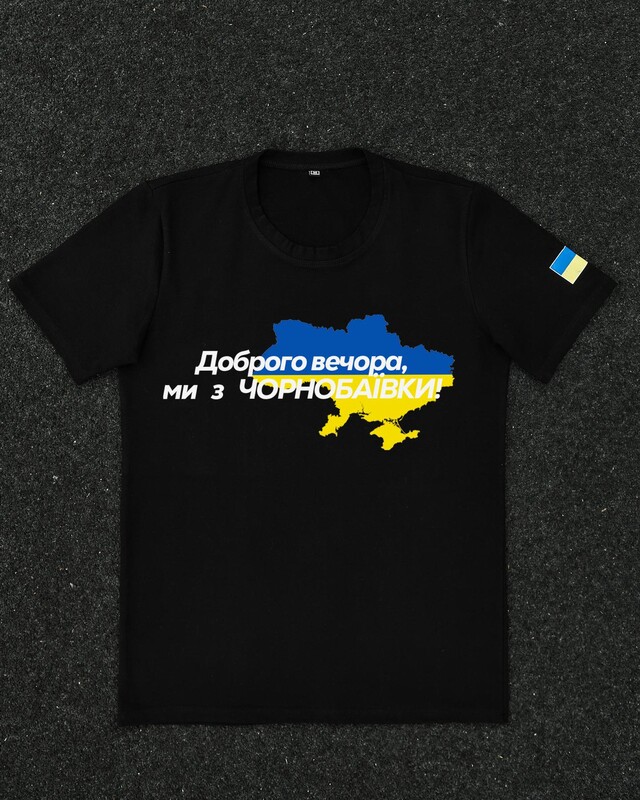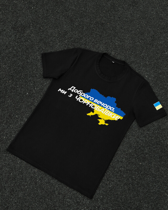 • Патріотична чорна футболка "Доброго вечора ми з ЧОРНОБАЇВКИ"